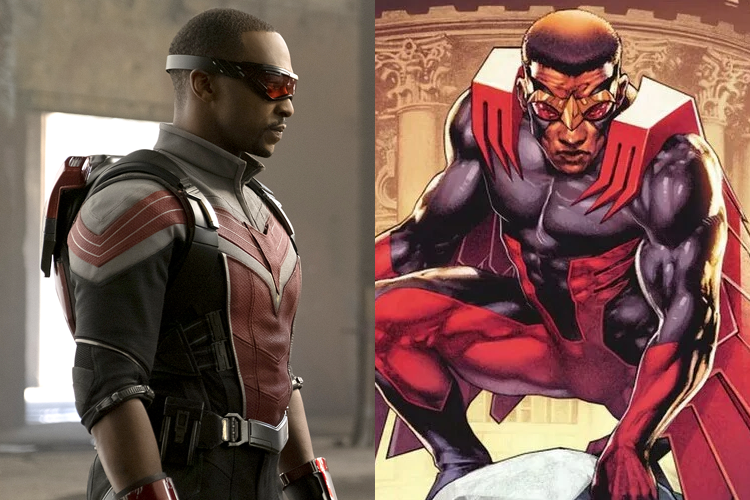 Персонаж по кличке Сокол (настоящее имя - Сэм Уилсон) впервые появился в комиксе «Captain America» («Капитан Америка») в 1969 году и стал одним из первых чернокожих супергероев. В Киновселенной Marvel роль Сокола исполнил американский актер Энтони Маки: как и в комиксах данный персонаж не обладает какими либо суперспособностями и в бою использует специальные крылья, дающие ему возможность летать. Впервые Энтони Макси сыграл Сэма Уилсона в фильме «Первый мститель: Другая война» (2014), а затем появился в еще 5 картинах и сольном сериале «Сокол и Зимний солдат».