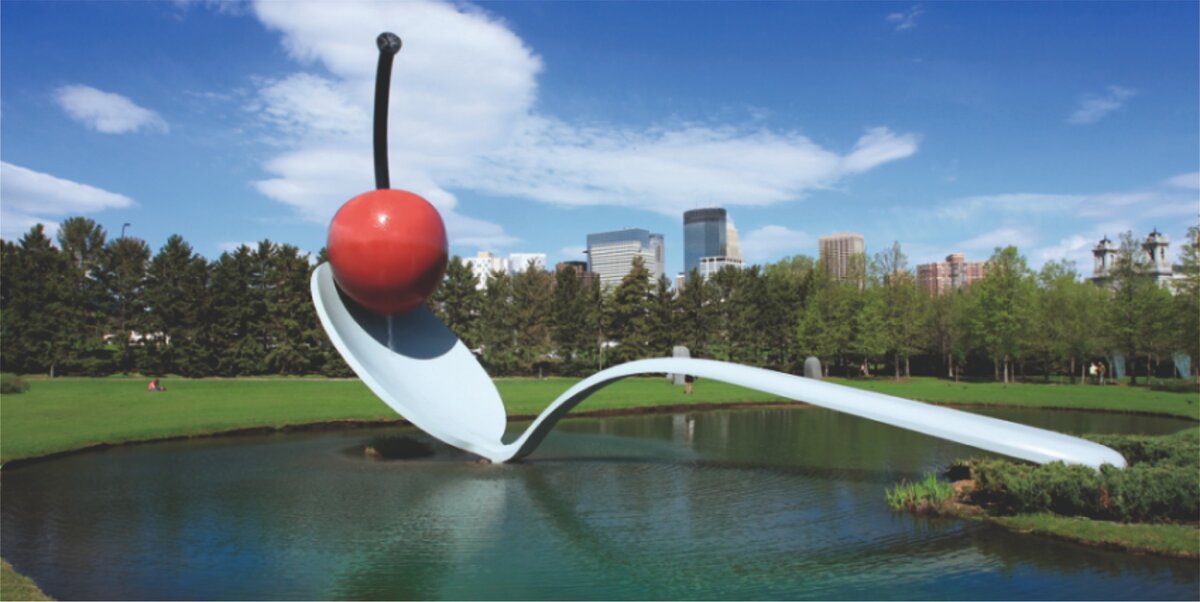 Расположен в США в Миннесоте. Это место очень любят туристы и местные жители за великолепный вид и красочные фотографии на фоне гигантской ложки, которая украшена яркой вишенкой.