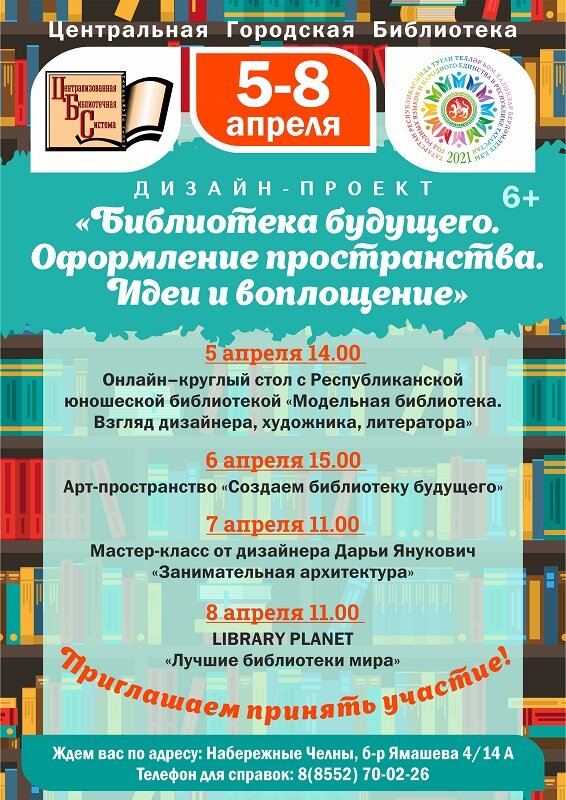 Центральная городская библиотека города Набережные Челны с 5 по 8 апреля реализует дизайн-проект: «Библиотека будущего. Оформление пространства. Идеи и воплощение».