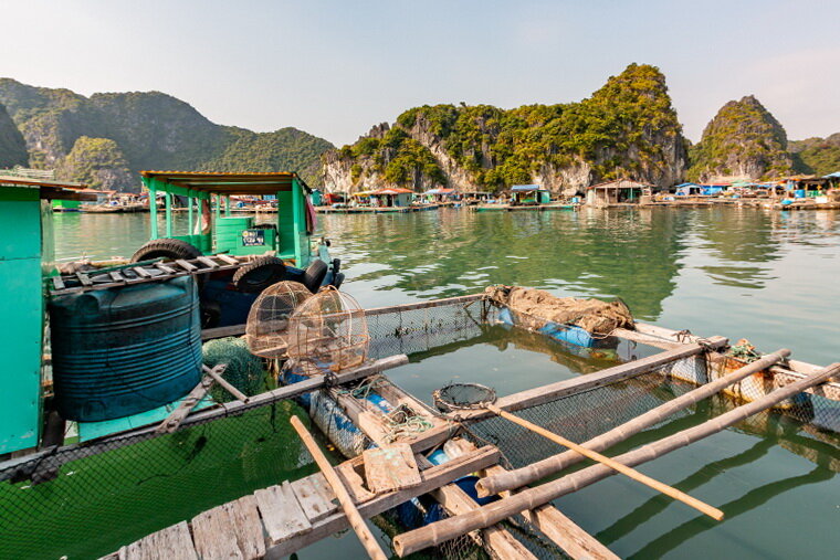 Пруды на самом деле представляют собой большие сети, погруженные в море и прикрепленные сверху к плавающим деревянным конструкциям. Я вижу на поверхности несколько мертвых рыб. « У нас проблемы с качеством воды, и мы постепенно сдаемся », - с грустью говорит Дай. Воды в заливе Лан Ха, а также в гораздо более известном заливе Халонг находятся в ужасном состоянии. Главный виновник - туристический Диснейленд, построенный в этой местности. Говорят, что некоторые отели без колебаний сливают сточные воды прямо в море, а экипажи туристических джонок выбрасывают мусор за борт. Вода всего района также загрязнена угледобычей в провинции Куангнинь. К сожалению, жители плавучих деревень и губительная рыбалка в местных водах тоже не усугубят ситуацию.