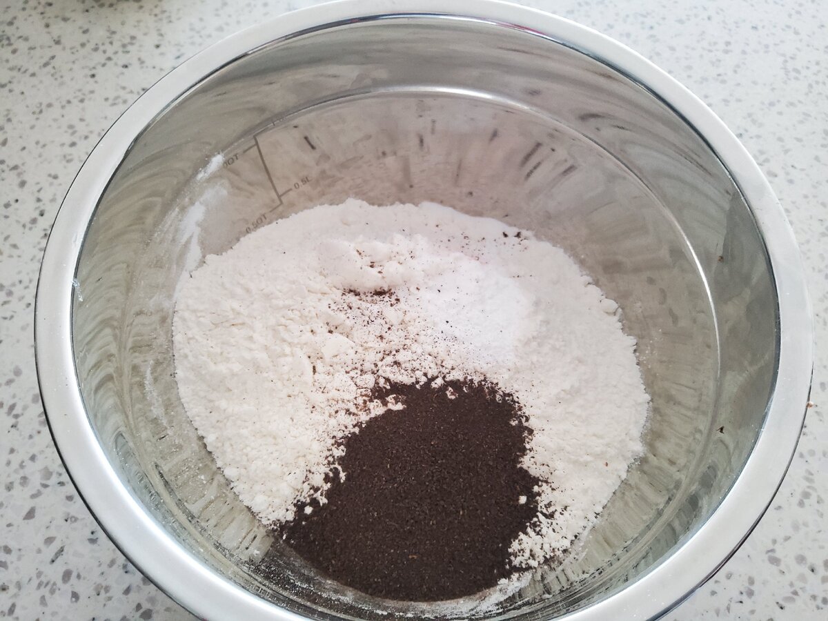 1. Смешать муку, разрыхлитель, соду, соль и чай Эрл Грей (чай смолоть в кофемолке). Просеять все 2~3 раза.