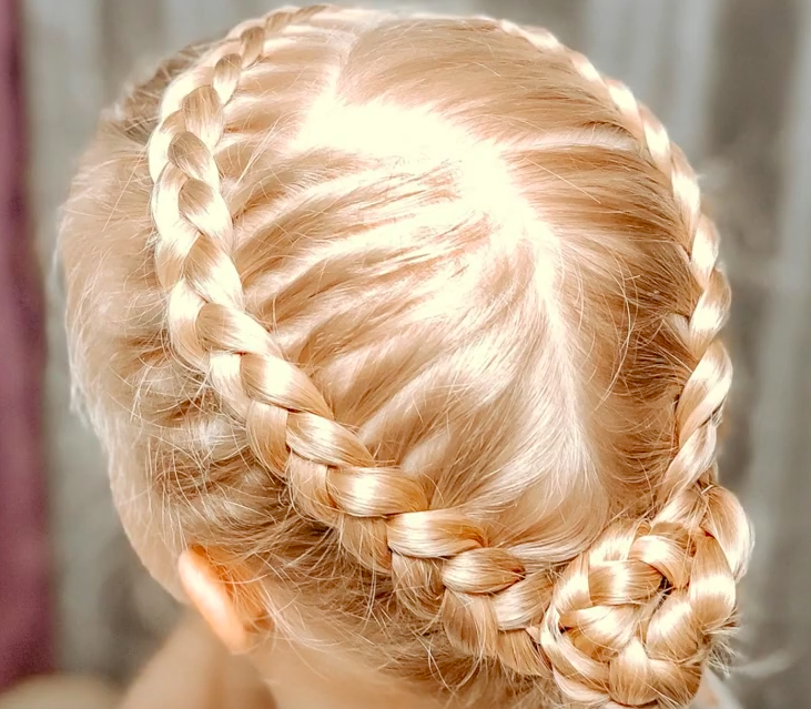 Соединяем готовые косы, скручиваем в шишечку и фиксируем резинкой.