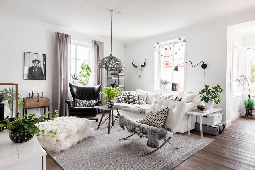 Интерьер шведского дома практически не отличается от оформления обычной квартиры. Основной акцент делается на материалах, цветовой гамме и элементах декора.