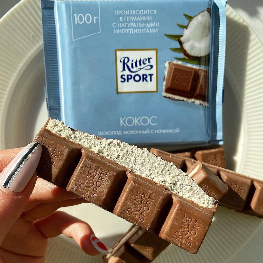 👉Перед вами молочный шоколад с кокосовой начинкой «Ritter Sport кокос».