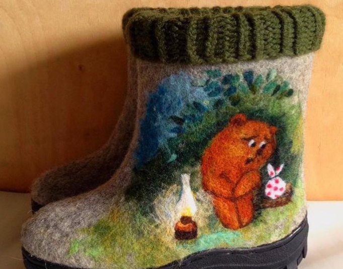Дело было несколько лет назад. Моя постоянная заказчица порекомендовала меня своей хорошей подруге. У подруги был маленький внук и она хотела подарить ему детские валеночки ручной работы. А в качестве декора попросила сделать сценки из мультфильма «Ёжик в тумане». Причём, как оказалось, любовь к этому мультику у всей семьи,