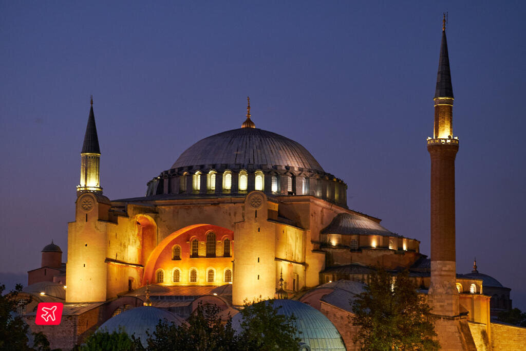 Визитная карточка и символ Стамбула, Айя-София на себе демонстрирует весь ход истории города и страны. Собор Святой Софии был построен в 6 веке, как главный патриарший храм Византийской Империи. После разграбления крестоносцами в 13 веке православный храм на 60 лет стал католическим, а в 15 веке превратился в мусульманскую мечеть. В начале 20 века после развала Османской Империи из мечети Айя-София стала музеем почти на 100 лет. Летом 2020 музей снова превратился в мечеть.