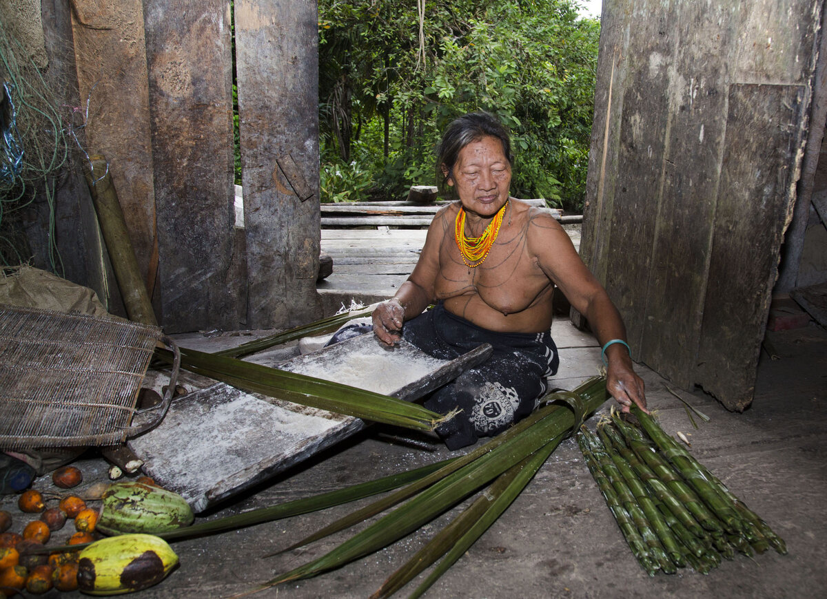 Основную пищу жители джунглей получают из дерева саго, одного из видов пальм. Животные также едят саго. Дерево срубают, обрезают ветви, раскалывают на крупные части и убирают неровности для удобства транспортировки. Это самый сложный этап – куски ствола надо докатить до дома по деревянным лагам, а иногда просто по воде.