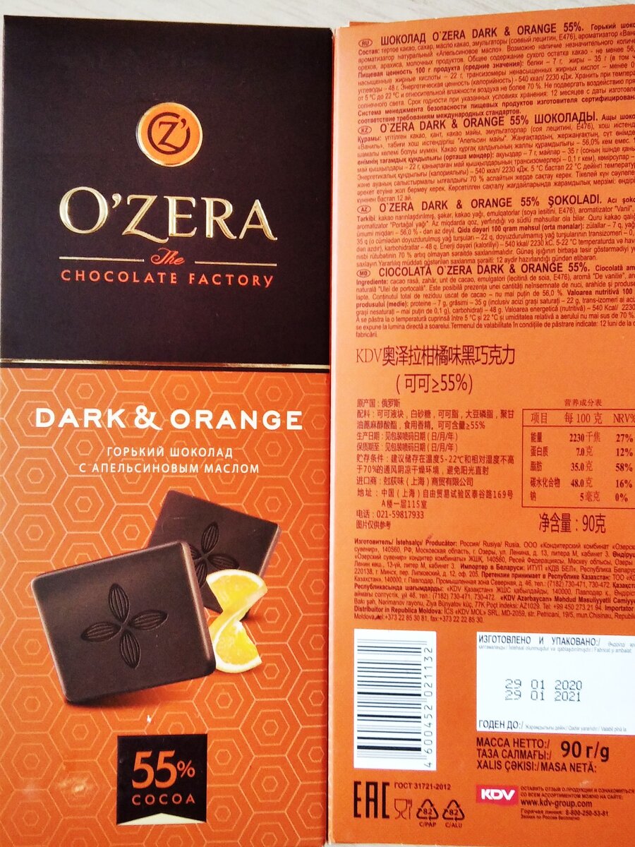 Шоколад O'Zera Dark and Orange горький 56% Какао