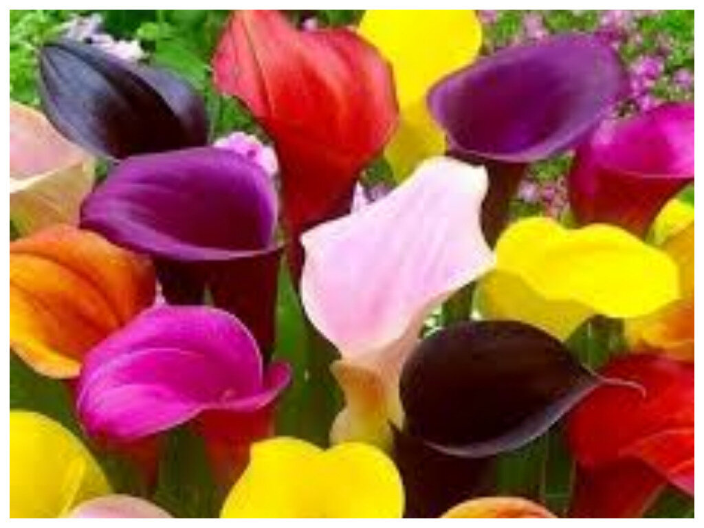 Каллы украшают сад во время цветения, разворачивая яркие покрывала цветков: желтые, малиновые, желто - оранжевые, малиново - красные, лиловые - на фоне крупных однотонно зеленых или покрытых серебристыми пятнами листьев.