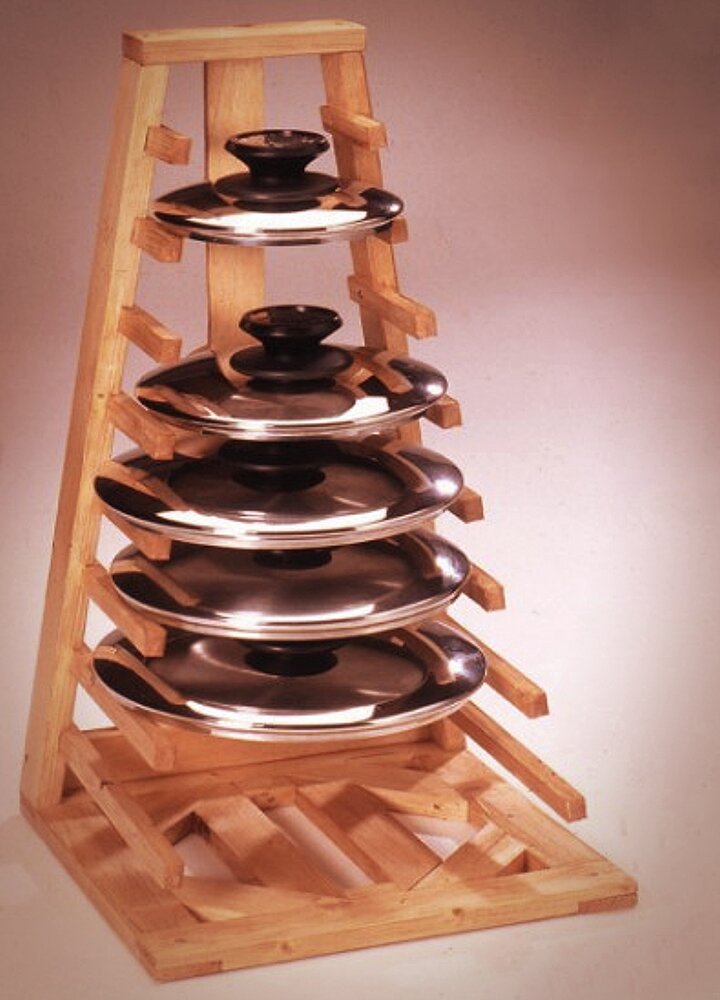 Первое, что попалось на глаза, это варианты настольных пирамид и кассетниц. В целом решение интересно, да и изготовить несложно для человека знакомого со столярным делом. Однако есть и минус у этого решение, Если ставить на столе, то занимают место столе рабочую поверхность, которого, как правило недостаточно всегда.