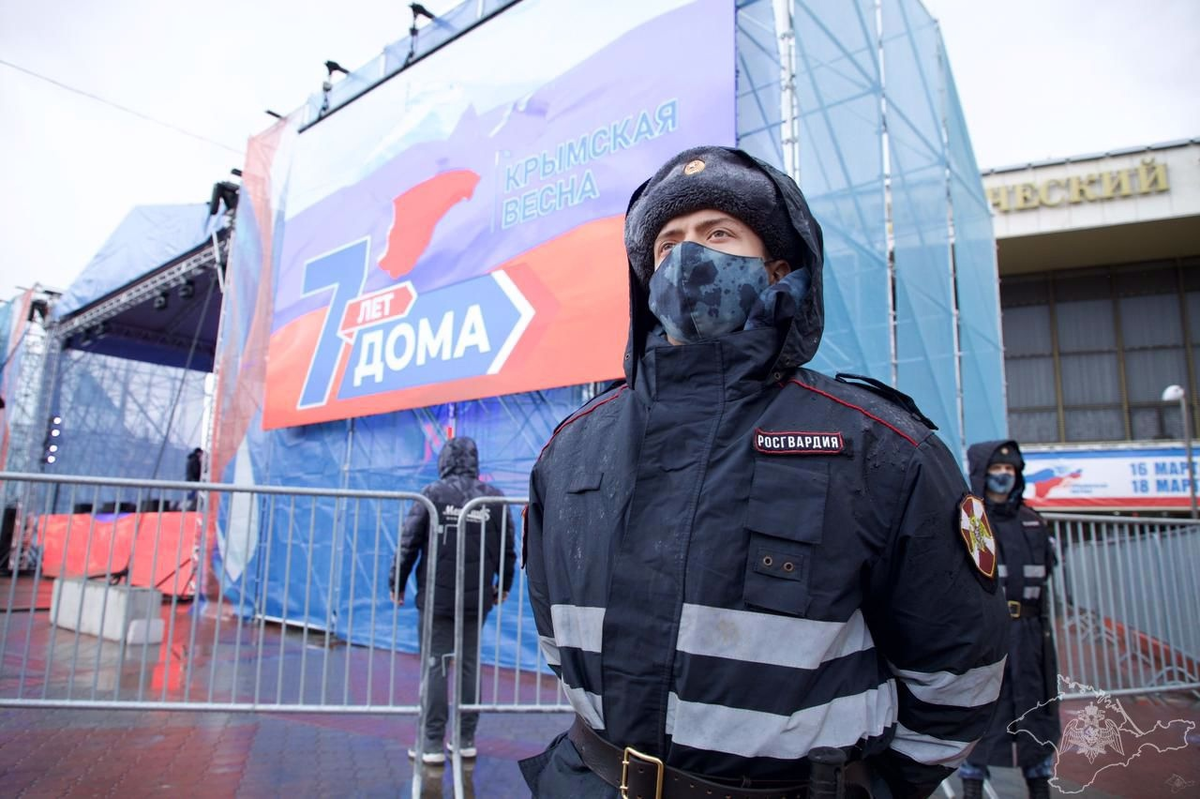 В день празднования седьмой годовщины воссоединения Крыма с Россией военнослужащие и сотрудники Росгвардии совместно с полицейскими и другими взаимодействующими структурами обеспечили охрану общественного порядка и общественной безопасности.