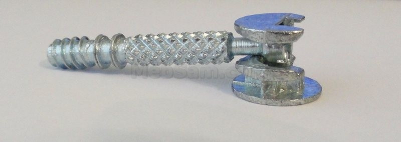 Популярным сегодня остается эксцентриковый зажим, шток которого идет уже с резьбой под ДСП, без пластиковой втулки. То есть состоит только из двух частей: штока и эксцентрика.