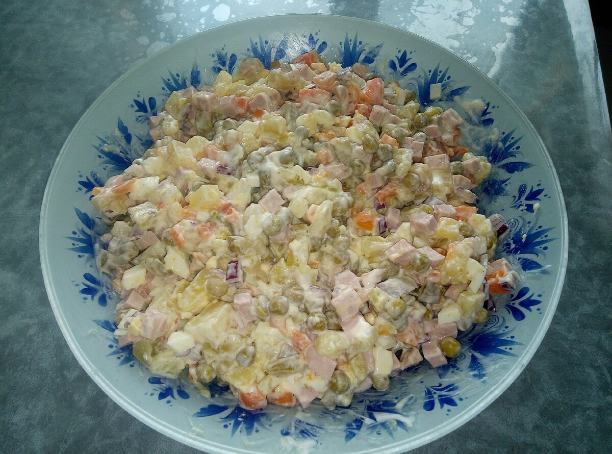 За рубежом салат оливье называют «русский салат», а в некоторых странах – «гусарский салат». Даже в России оливье дают разные названия. Вы можете увидеть как в меню ресторанов или на прилавках в магазинах оливье внезапно превращается то в «зимний салат», то в «мясной салат», то в «столичный салат», то в «советский салат».