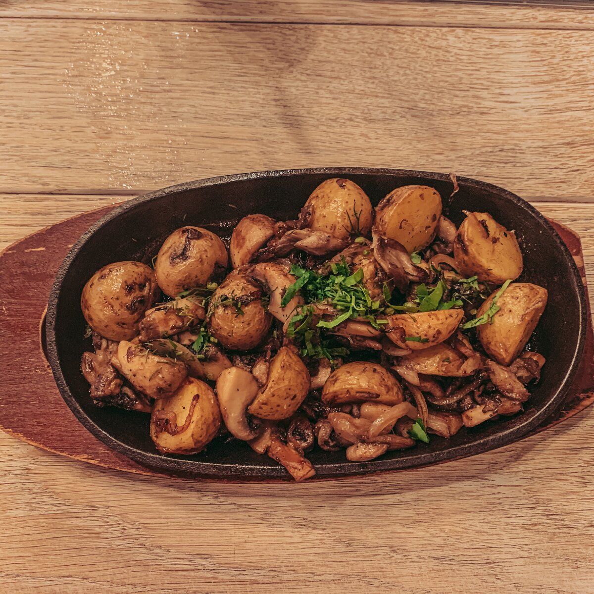 Не знаю, как кто, а я хожу в рестораны Санкт-Петербурга за вкусной едой. Но если в 2019 BAHROMA меня заманила слоеным хачапури и тыквенными оладушками, то после обновления меню в 2020 году пришлось искать новых фаворитов. Нашла драники с грибным соусом и картошку с грибами. Фото картошки размещено выше.