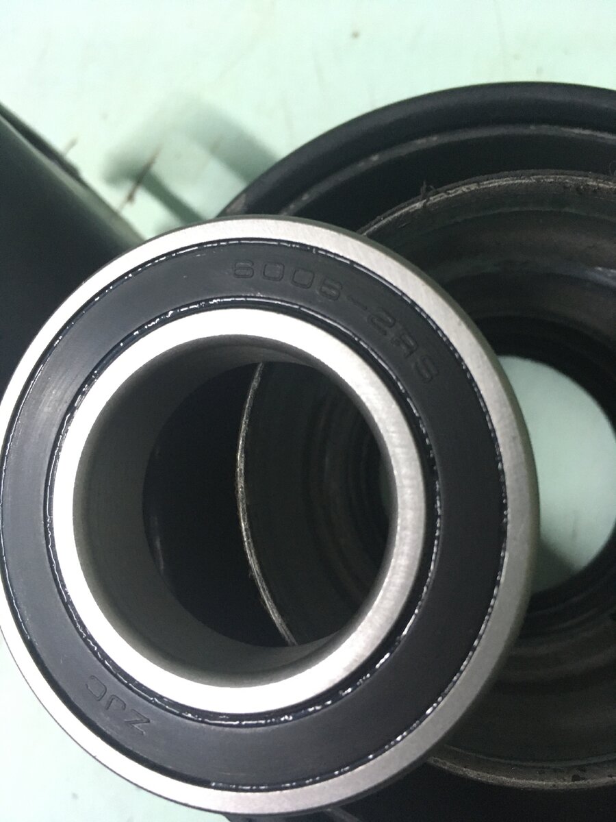 Защита у подшипника из пластика её хорошо и не повредив можно вынуть канцелярским ножом , и вскрытие показало что смазки там ни капли нет. Вывод на сколько бы мне его хватило если бы я не стал разбирать его для смазки. Ну даладно, снял со второй стороны пластиковую защиту подшипника все тем же канцелярским ножом и там была смазка засохшая 😃😃 капли три а может четыре )))). Положил его в чашку с бензином и отмыл его от этого всего увиденного что было в подшипнике. ( фото не успел сделать) , просушил подшипник путём нагрева газовой горелкой немного и бензин выветрился . Смазку берём хорошую для подшипников и забиваем в подшипник не много. И устанавливаем обратно пластиковые заглушки на свои места. Запрессовка в обратном порядке , подбором головок. Подшипник на подвесной Тойота Виш 6006 . И извините за качество фото.