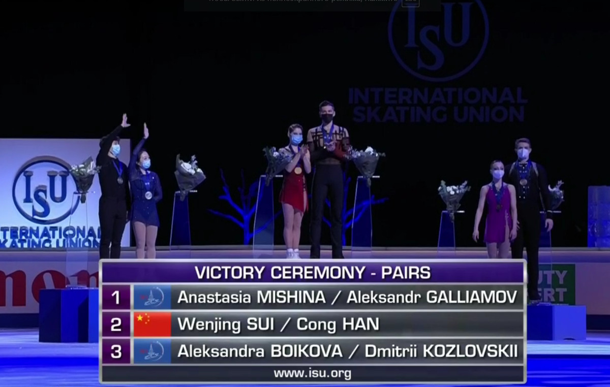Насте всего 19, Саше 21 год, они 2 сезон во взрослых. И они заслужили эту медаль своим катанием. Они очень осторожничали, некоторые элементы были как будто на грани, но все вытащили и обошли мастеровитых Суй и Хань. Спасибо им за это золото! Прогресс пары в течение сезона налицо.