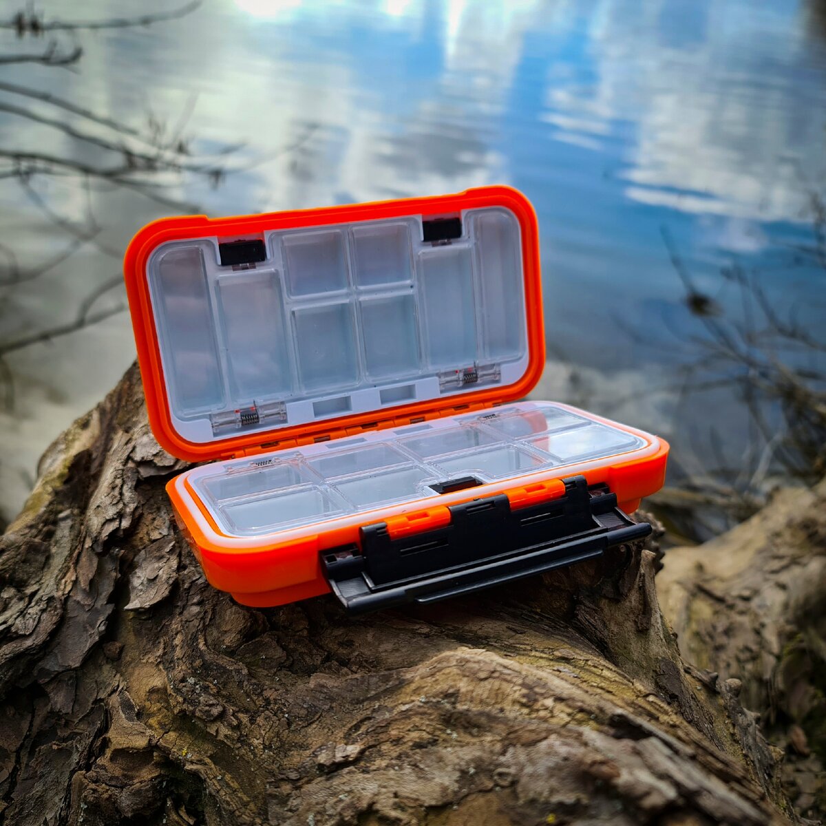 Удобный кейс для рыбацких мелочей. Я выбрала коробку оранжевого цвета и размер Medium . У продавца доступен также серый цвет кейса и три размера.