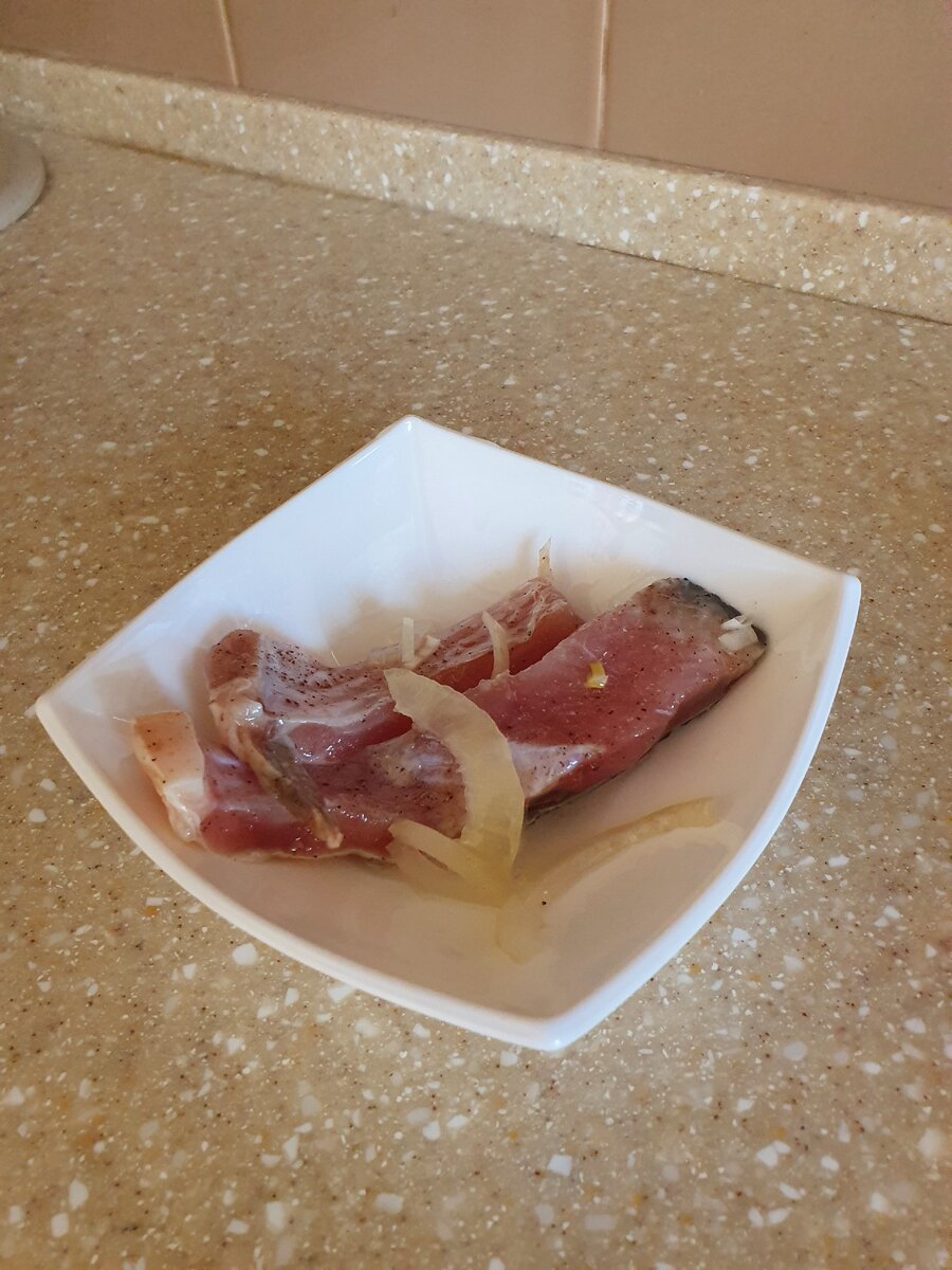 1. Чистим рыбу, разделываем и режем её на порционные кусочки.