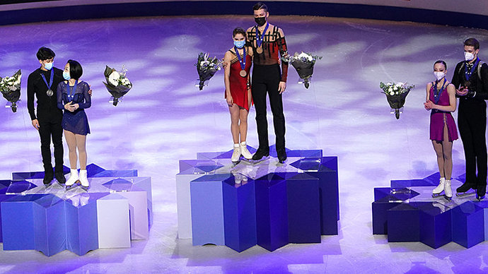 Грандиозно смотрелся пьедестал, на котором стояли 2 наши пары и звучало величественное начало первого концерта Петра Чайковского. Ей-богу, это достойнейшая замена отсутствующему гимну.