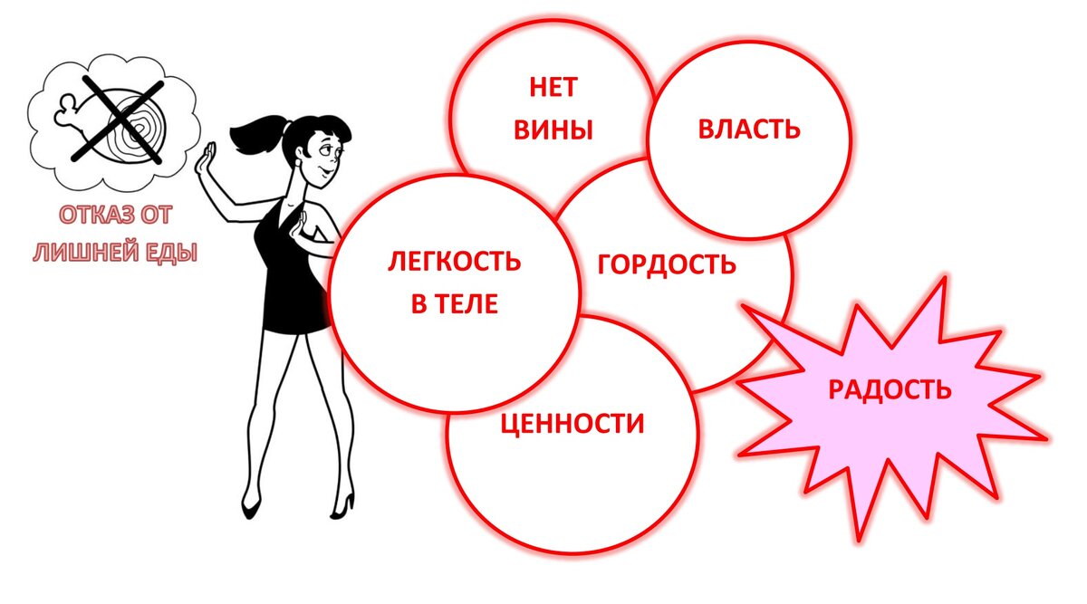 РАДУЙТЕСЬ СЛЕДОВАНИЮ СВОИМ ЦЕННОСТЯМ. Я знаю, что для вас ценно заниматься своим здоровьем. Я знаю, что для вас ценно выглядеть красиво. Я знаю, что вы цените заботу о себе. Почувствуйте, что своим отказом от лишнего кусочка, вы поддерживаете, усиливаете, материализуете свои ценности. Как же радостно жить “по-совести”, когда ваши поступки соответствуют вашим внутренним критериям, что такое “хорошо”, а что такое “плохо”.