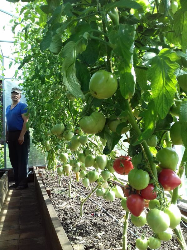 В условиях короткого лета Восточной Сибири очень трудно получить большой урожай томатов без теплицы. Для эффективного использования пространства теплицы я выращиваю индетерминатные сорта томатов. В получении достойного урожая, наряду с поливами и удобрениями, немаловажную роль играет формирование куста томата. Вот об этом и поговорим. Первый пасынок из под первой кисти отпускаем до соцветия. Выше, через два листа, его прищипываем. При раздвоении ствола- отводок (он обязательно имеет лист после вилки) вершкуем так же как и первый пасынок. Если ещё будут раздвоения-поступаем так же. При формировании 7-8 кисти на кусте, вершкуем основной ствол через два листа от верхней кисти. Далее до конца сезона удаляем как все новые пасынки, так и старые отплодоносившие. Если раздвоений ствола нет, то я формирую описанным выше способом два-три пасынка на основном стволе. И главное, я считаю удаление листьев на томате это противоестественное мероприятие. Лист - это фабрика по производ