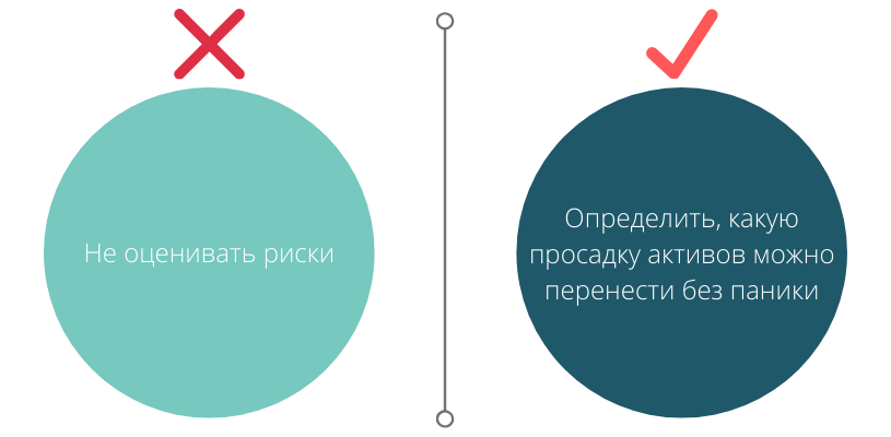 Если ваш инвестиционный портфель состоит на 100% из акций, снижение рынка акций на 50% уменьшит размер портфеля вдвое. Если доля акций в портфеле занимает 50% – портфель сократится на 25%. Если акций только 20% – вы потеряете 10%. Подумайте, какой спад вы сможете пережить спокойно.