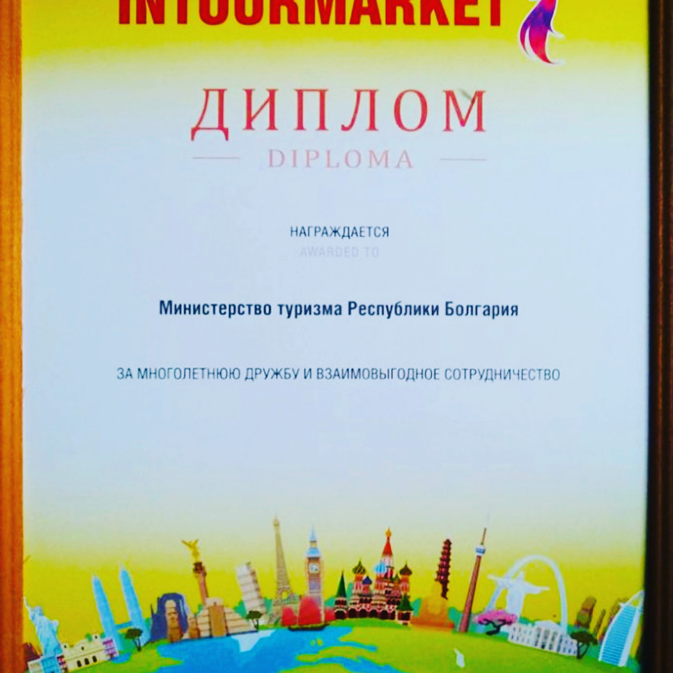 Министерство туризма Болгарии получило диплом от международной туристической выставки Интурмаркет 2021.