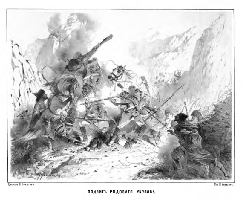 К солдату который был при провианте, подскочил мюрид с кинжалом; солдат не потерялся, ударил его штыком, говоря : «На закуси, наешься русского хлеба!». Солдатским остротам не было конца, одни говорили: «Вместо хлеба, попробуй штыка», другие : « Не трожь солдатское, впрок не пойдет, а вот на штык попадешь.» и тому подобное.