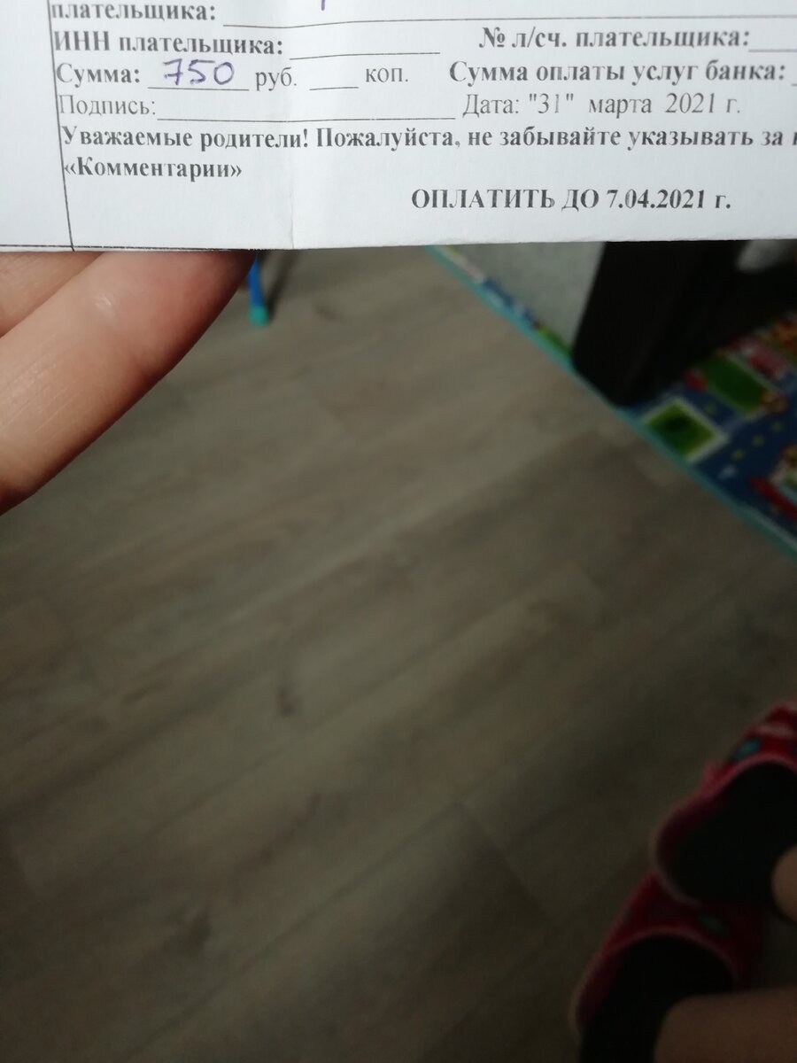 Эта квитанция уже за садик.