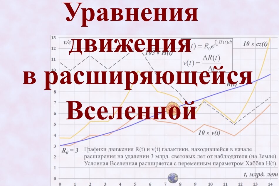 В предыдущих разделах мы использовали уравнения движения сверхновых и других объектов в расширяющейся Вселенной, из которых выводятся уравнения закона Хаббла. Уравнениями движения мы называем зависимость удалённости некоторого объекта от наблюдателя и его скорость в расширяющейся Вселенной.