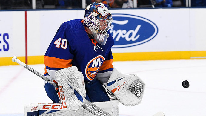 Российский вратарь ,,Нью-Йорк Айлендерс,, Семен Варламов признан второй звездой дня.
