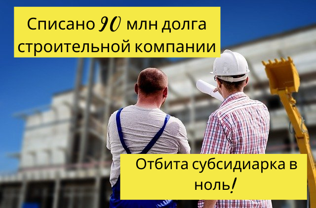 Оригинал статьи тут Кейс: списано 90 млн. руб долга строительной компании, и на 100% отбита субсидиарная ответственность