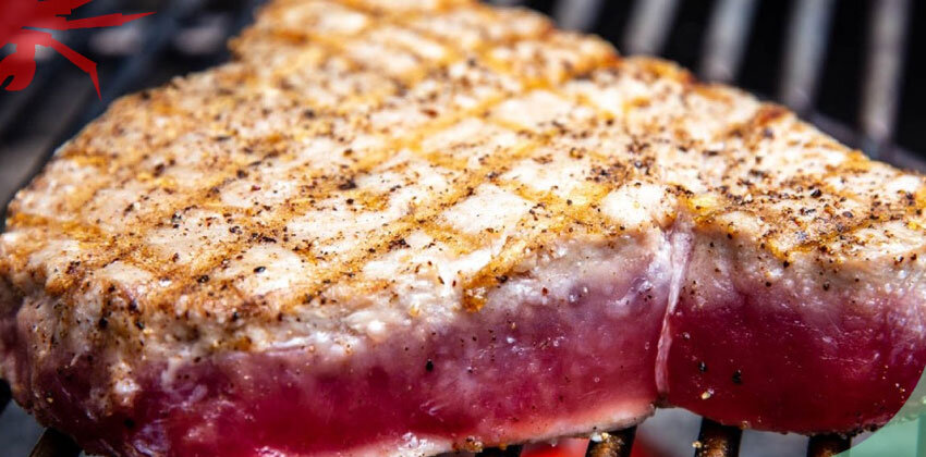 Затем берем стейк тунца, заливаем маринадом и ставим в холодильник на 1 час. После чего зажариваем его на гриле по 4 минуты с каждой стороны. Блюдо готово. Приятного аппетита!