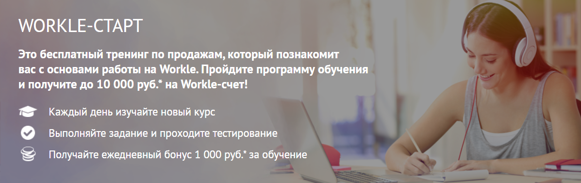 Если вам нужно больше знаний, загляните на Workle TV . Всем новым пользователям мы рекомендуем пройти бесплатную программу обучения «Workle-старт». По ее итогам на ваш счет будет начислено до 10 000 руб.