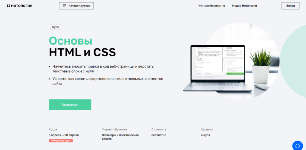 Чему можно научиться: курс предлагает всю базовую информацию об HTML и CSS, после прохождения можно сверстать сайт малой и средней сложности.