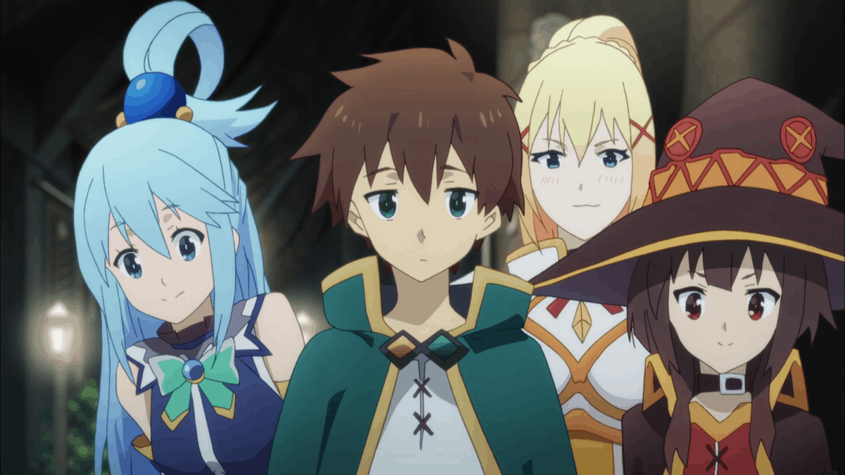 Кадзума Сато — школьник- хикикомри , который внезапно и нелепо умирает. После смерти он встречает богиню Акву, которая предлагает ему переродиться в параллельном мире, построенном на принципах MMRPG, где он должен будет вести борьбу против Короля демонов. Кроме того, она говорит, что он может взять с собой любую вещь или способность. Кадзума решает взять с собой Акву, и они перемещаются в фэнтезийный город Аксель. Кадзума быстро разочаровывается в глуповатой богине, тем не менее решает начать зарабатывать и вступает в гильдию приключенцев . Постепенно в группу вступают новые члены: помешанная на взрывах маг Мэгумин и рыцарь-защитница с мазохистскими наклонностями Даркнесс . Собрав такую непредставительную компанию, Кадзума решает отказаться от идеи борьбы с Королём демонов и старается жить размеренной роскошной жизнью.