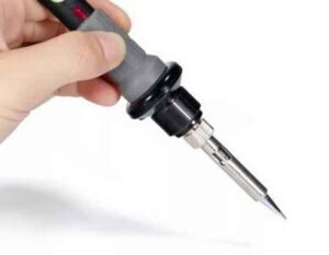 В большинстве случаев это несложное устройство с медным жалом. Внутри паяльника находится нагревательный элемент в виде нихромовой нити, которая и разогревает жало до температуры плавления припоя. Паяльник широко используется как в монтажных операциях, так и в ремонте.