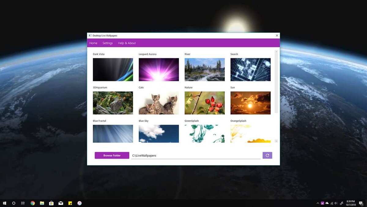 Desktop Live Wallpapers - Программа для запуска живых обоев на рабочем столе для windows 10 в отличии от большинства похожих программ Desktop Live Wallpapers можно скачать Microsoft Store, что в свою очередь будет достаточным аргументом для тех кто ещё сомневается стоит ли устанавливать анимированные обои на рабочий стол windows 10.