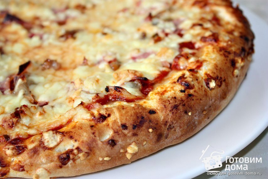 Хочу предложить вам один из вариантов теста для пиццы. Мы любим это тесто, так как оно получается тонким и в меру хрустящим Так как сегодня я делала пиццу для детей, то по их желанию тесто пришлось раскатывать толще