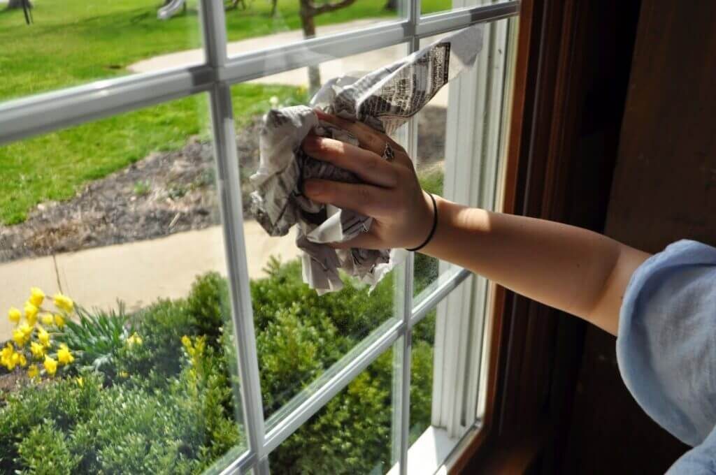 Окна без разводов. Метод старый, но работает отлично. Вымойте стекло с моющим средством. После натрите сухой газетой.