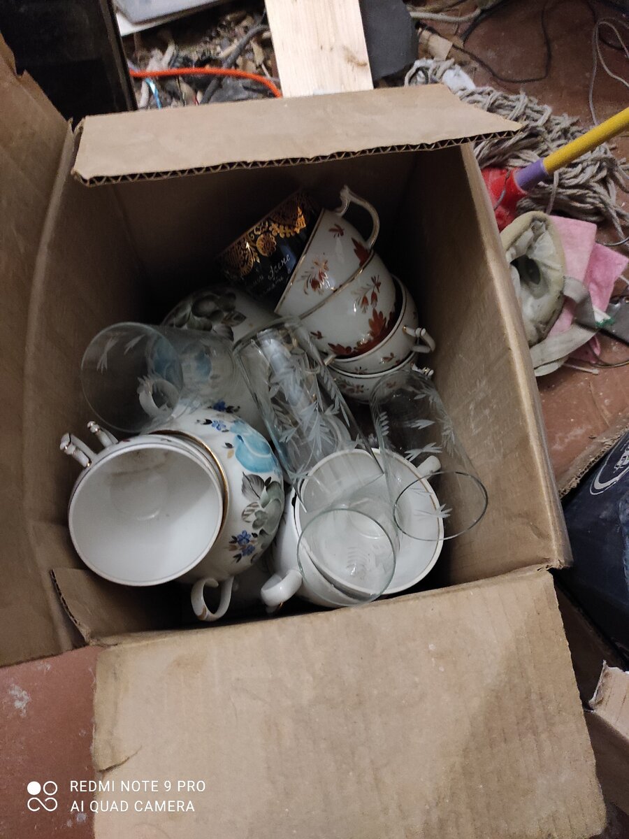 Вроде и посуды дома достаточно, зачем оставлять эти советские чашки и кружки, которыми неизвестно кто пользовался, подумал я, но все же взыграло любопытство, а вдруг в статьях на дзене пишут и не только обманные статьи, может я стану одним из тех "миллионеров" которые нашли богатство у себя под носом, с виду длстав все содержимое из коробки сложно понять что сколько стоит, но если внимательно изучить...