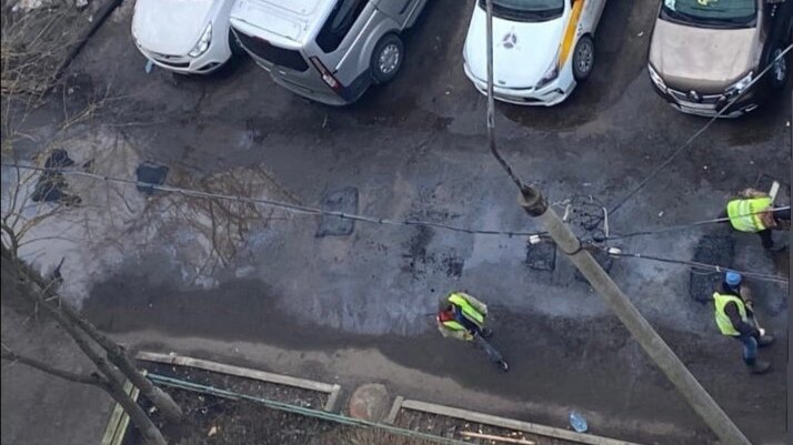 Жители Красногорска запечатлели как во дворе их дома заделывают ямы в асфальте вместе с лужами. По словам красногорцев, подобные работы проводят каждый год.