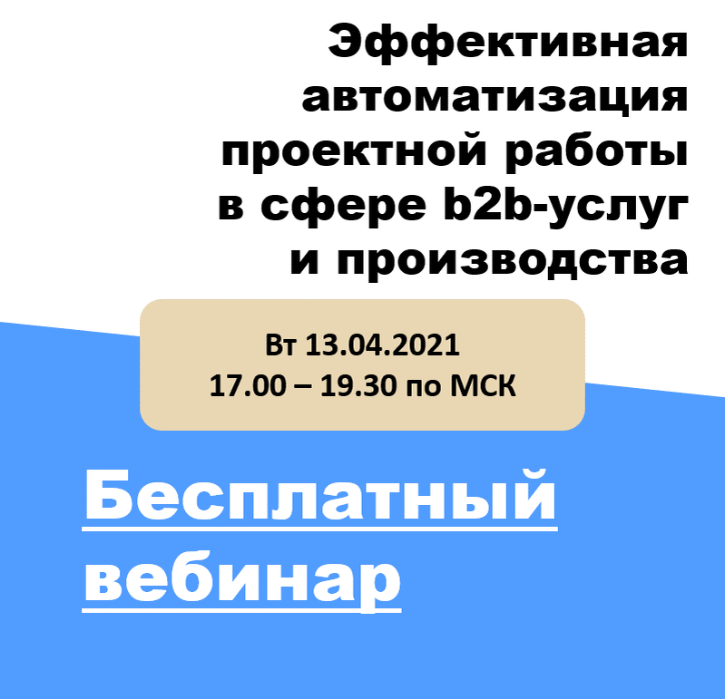 13 апреля состоится бесплатный вебинар для владельцев бизнеса, топ-менеджеров, директоров по развитию, руководителей отделов продаж и управления на тему “Эффективная автоматизация проектной работы в сфере b2b-услуг и производства".