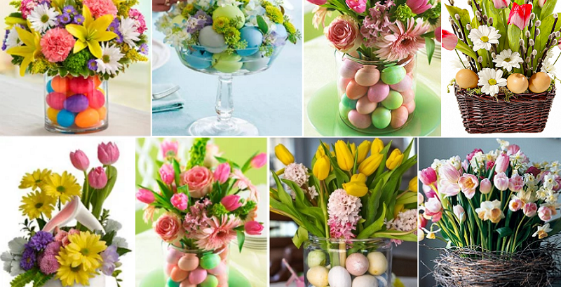 Цветочные композиции всегда идеально украшают любой интерьер. Добавьте несколько символов Пасхи к цветочным букетам, и у Вас получится чудесный Пасхальный декор. Только используйте нежные, весенние цветы.
