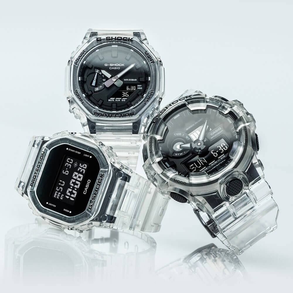 Бренд представил серию скелетонов Transparent Pack, в которую вошли шесть бестселлеров: флагманы последних двух лет GA-2000, GA-2100 и GA-900, а также вневременная классика DW-5600, GA-700 и GA-110. Все часы выполнены в корпусе из темного и светлого прозрачного полимера. Источником вдохновения при создании серии послужил знаменитый манифест футуризма. Провозглашая культ будущего и разрушение прошлого, он призывал смело двигаться вперед. Очевидно, это созвучно идее японского бренда.