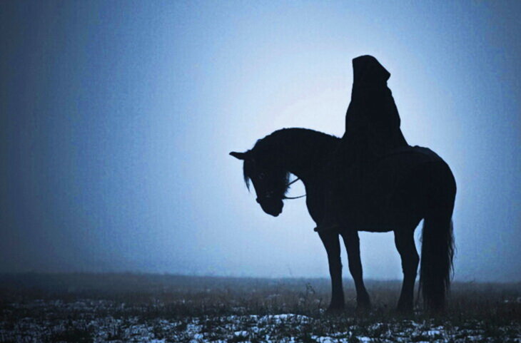 Впрочем, земная миссия третьего всадника воспринимается в негативном ключе не только из-за цвета его коня. В том, что происходит в мире при его появлении, большинство толкователей усматривает жестокий вселенский голод, — и такое понимание наделяет всадника на вороном коне еще одним признаком «ужасного вестника апокалипсиса».
