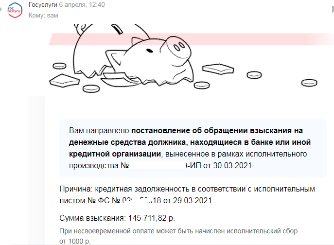 Так как оплату не произвела, к приставам не ездила и не предоставила данные о счёте, с которого нельзя списывать, то и пришло вот это новое постановление об обращении взыскания.