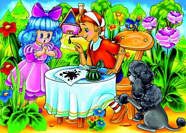 Читали, наверно, сказку про деревянного мальчишку? Помните, как Мальвина пыталась научить его грамоте, заставляя писать про розу, которая упала на лапу Азора.