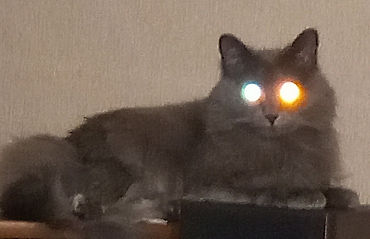 Глаза кошки не излучают свет, а лишь отражают его. В полной темноте куда свет не попадает, у кошки глаза не светятся.