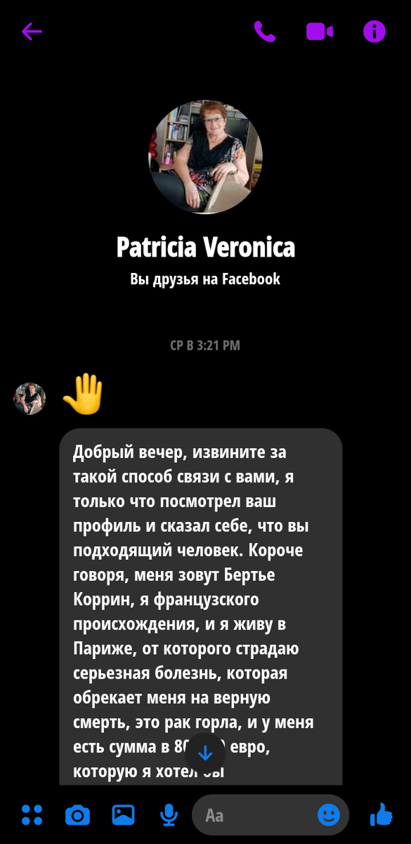 Хочу вам продемонстрировать сообщение с моей личной страницы в Фэйсбуке,которое мне прислали на днях мало уважаемые мошенники!На яву там достаточно весело, если к этим сообщениям подойти с позитивом! Всё что под курсиром, это оригинальные слова наших иностранных друзей:)
